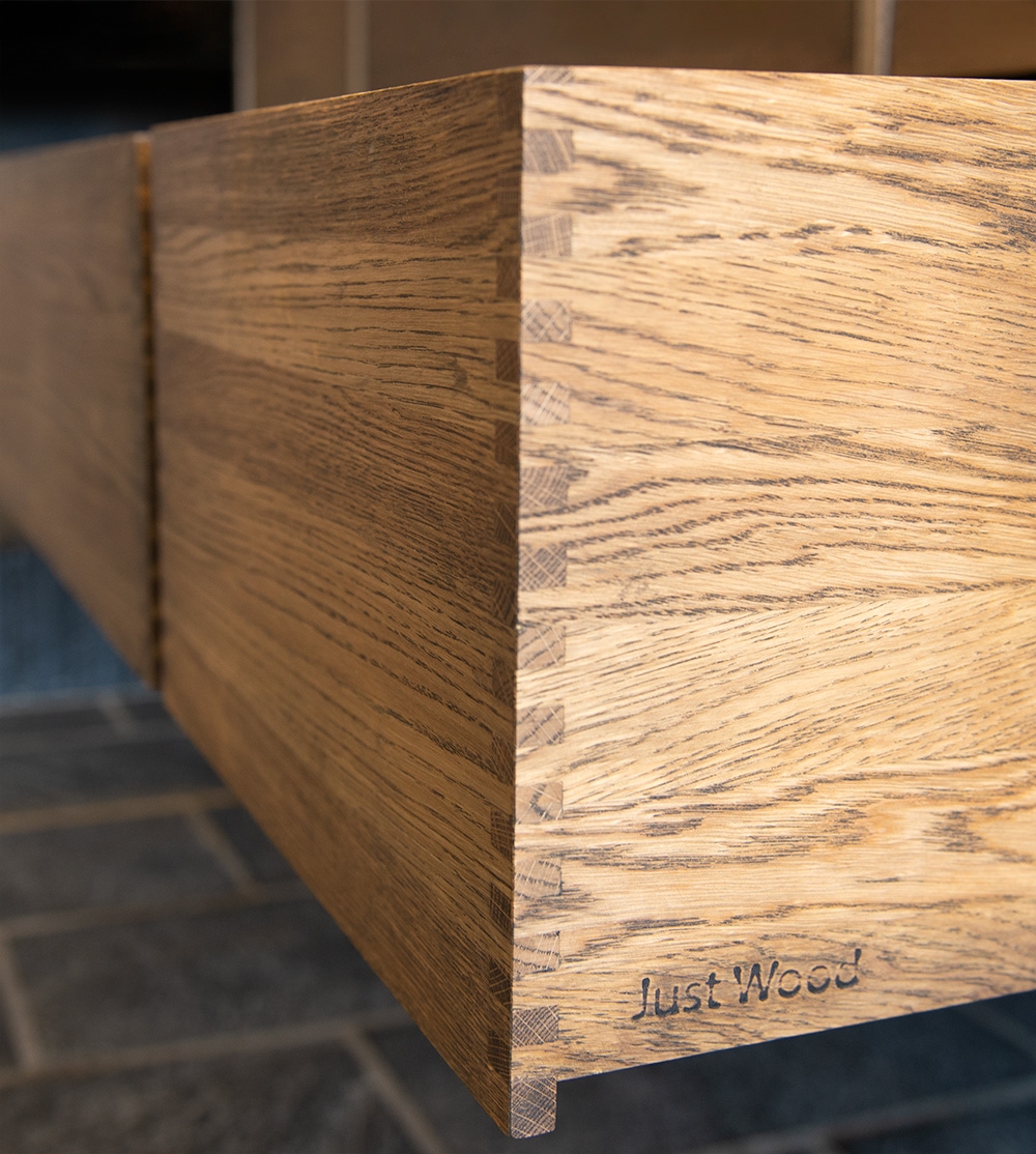 Et af kendetegnene ved vores skuffer er vores massive, olierede fingertappede samlinger der er samlet med håndkraft. De giver et flot og æstetisk udtryk, som du stolt kan vise frem derhjemme.