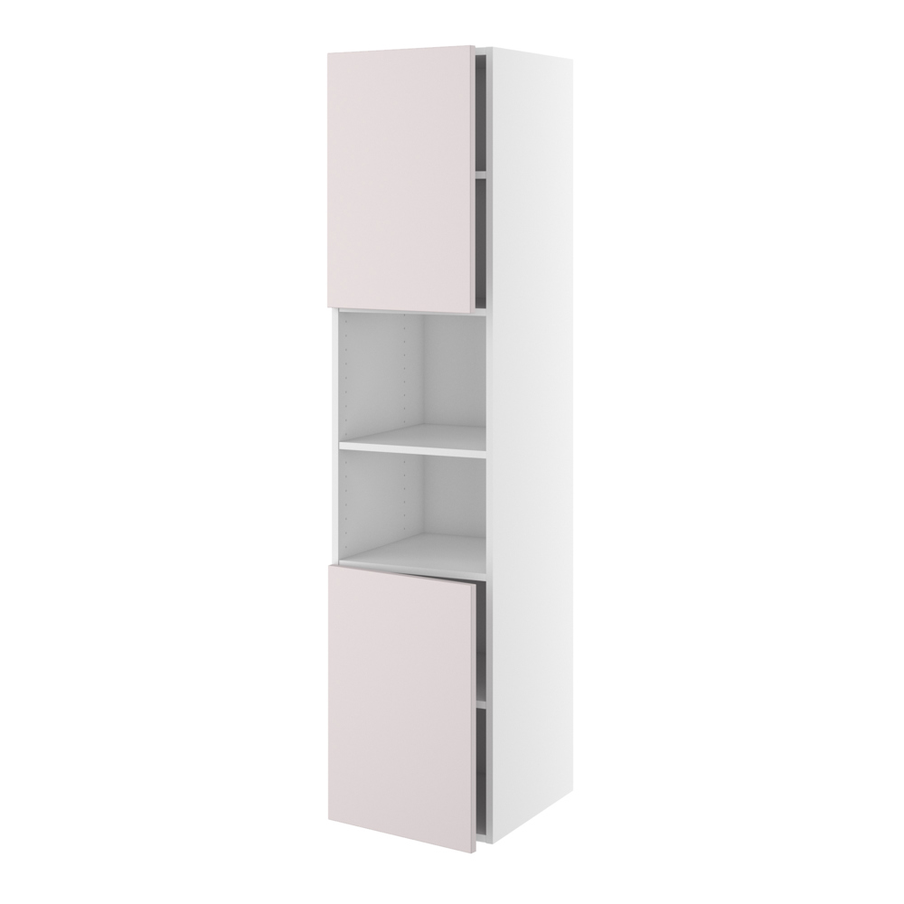 Her er et helt klassisk badskab til dig, der gerne vil have et højskab på badeværelset. To låger og en åben sektion i midten betyder, at det meste kan gemmes væk, samtidig med at du har let adgang til det, du bruger mest. Badhøjskabet, der har en dybde på 45 cm er udstyret med 5 flytbare hylder, hvor du kan opbevare alle badeværelsets småting. Højskabet kan hænge alene eller sættes sammen med enten et badmiljø eller andre højskabe. Den åbne reol i miden får skabet til at virke lidt lettere, især i små badeværelser. Et smart og praktisk højskab med masser af opbevaringsplads, der egner sig perfekt til badeværelset, og er især velegnet hvor pladsen er trang.