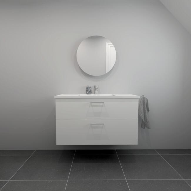 Moderne og elegant badmiljø, der passer perfekt ind på badeværelset. Det praktiske badsæt består af et 100 cm vaskeskab, 2 stk. flotte Kvadro greb, samt en 102 cm støbt marmorvask.