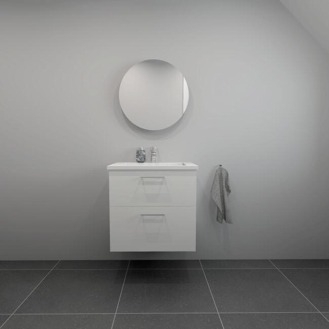 Moderne og elegant badmiljø, der passer perfekt ind på badeværelset. Det praktiske badsæt består af et 60 cm vaskeskab, 2 stk. flotte Kvadro greb, samt en 62 cm støbt marmorvask.
