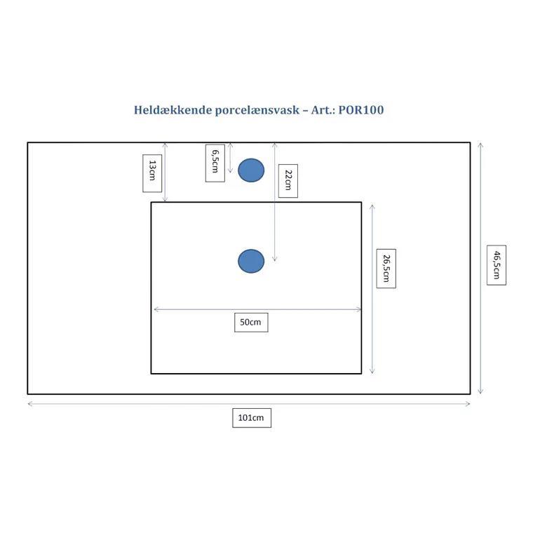 • 810 mm / 81 cm støbt porcelænsvask i dybde 465 mm / 46,5 cm
