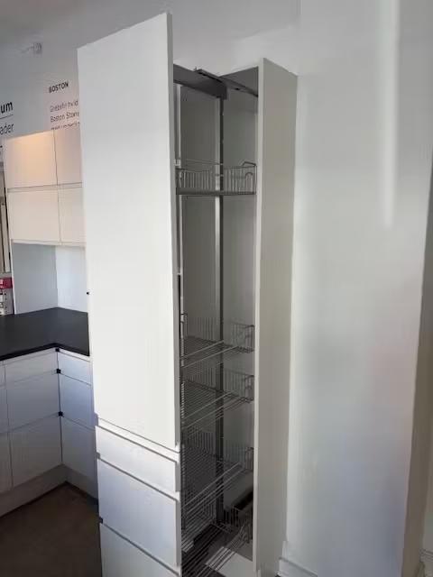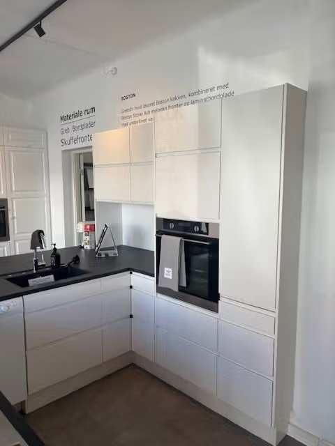1x højskab 60 cm med plads til både ovn og mikroovn samt låge og 2 underskuffer