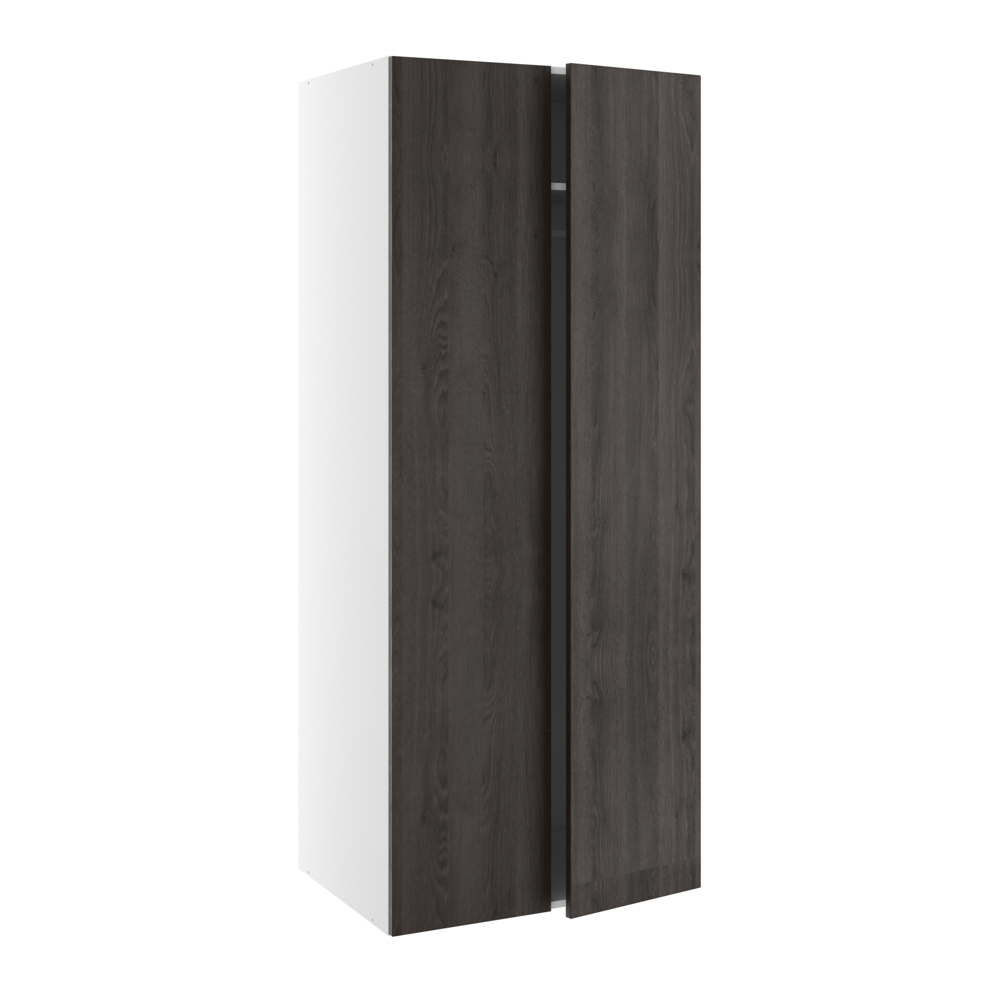 Her får du et superflot garderobeskab med 2 2-delte låger. De delte låger giver mulighed for, at du kan give skabet kantmonterede greb som for eksempel vores populære Formia-greb.