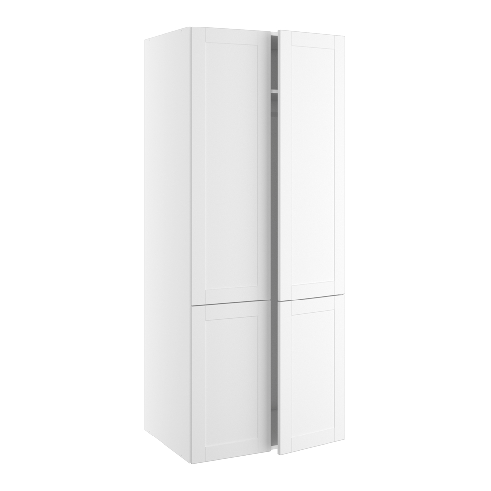 Her får du et superflot garderobeskab med 2 2-delte låger. De delte låger giver mulighed for, at du kan give skabet kantmonterede greb som for eksempel vores populære Formia-greb.