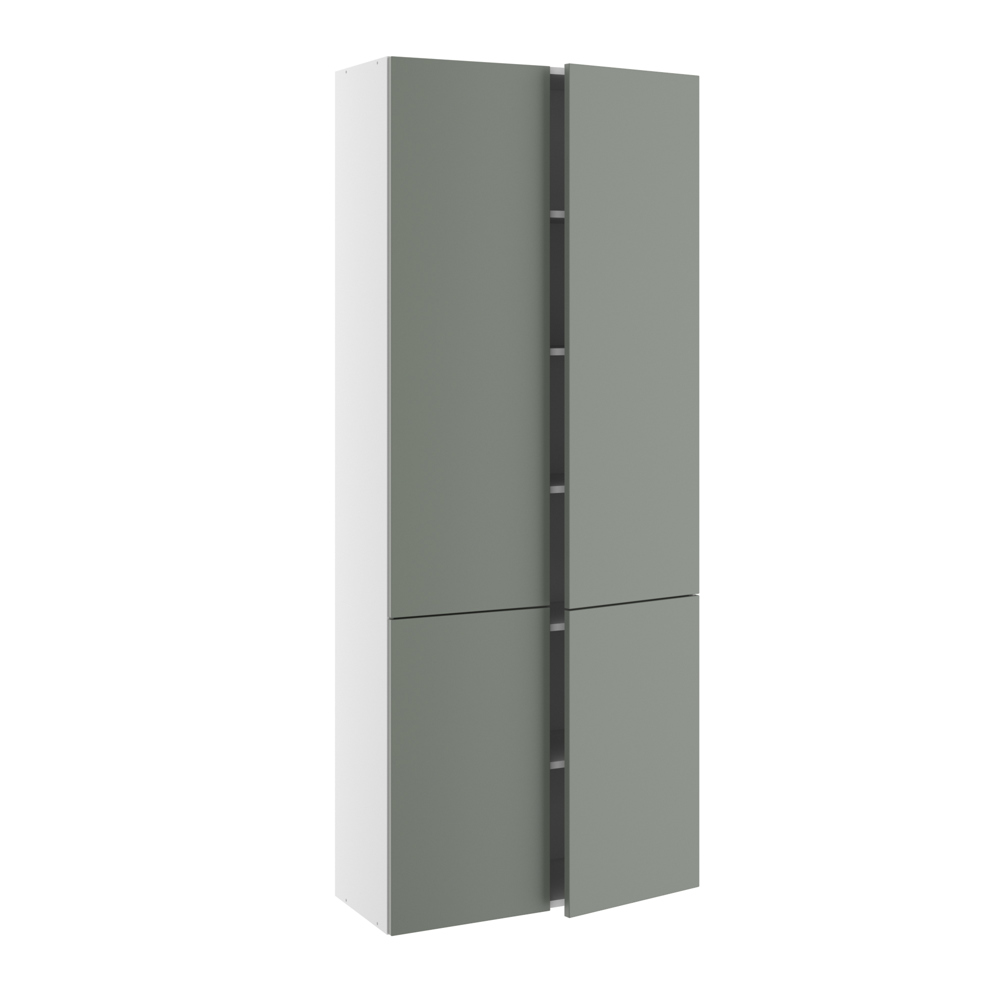 Bredt højskab i halv dybde med 5 hylder - todelte låger