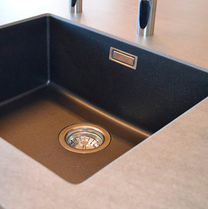 BEMÆRK: Montøren tilkobler ikke vand eller strøm. Vaske til Dekton bordplader |