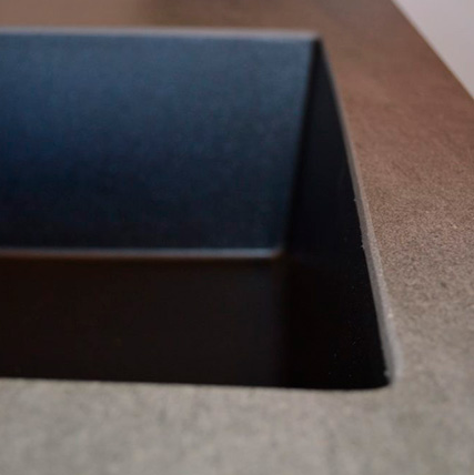 Daglig brug Du finder ganske enkelt ikke en nemmere og mere robust bordplade til dit køkken end keramik. Pladen har således en lang række egenskaber, der gør den utrolig behagelig i dit daglige køkkenliv. Med mindre du tager ekstreme metoder i brug, kan du fx ikke lave ridser i overfladen, ligesom pladen er så godt som ikke-absorberende. Du kan med andre ord spilde hvad som helst – og helt enkelt tørre det op med en opvredet klud og eventuelt nødvendige rengøringsmidler. Heller ikke hverken varme eller kulde kan gøre nogen skade på keramik. Faktisk er materialet så varmebestandigt, at din gryde vil smelte før din bordplade, ligesom du uden problemer kan lægge frostvarer til optøning direkte på bordet. Designdetaljer Den blot 12 mm tykke keramikbordplade egner sig perfekt til tidens moderne køkkendesigns med rene linjer og store flader. Vil du have pladen til at fremstå tykkere og mere bastant mod rummet, kan du få påmonteret en forkant på op til 40 mm. Ved Dekton® er alle synlige kanter faset 2 mm eller 3 mm efter ønske. Farver og strukturer Du kan vælge din keramikbordplade i mere end 10 flotte farvevarianter, som alle er UV-bestandige og derfor ikke falmer i sollys. Dekton® fås i mere end 40 ligeledes UV-bestandige farver og mønstre; fra ensfarvede plader til smukke strukturer, der leder tankerne i retning af marmor og andre naturlige stenarter. Materialebeskrivelse En keramik bordplade består af sand, feldspat og ler tilsat farvepigmenter. Den færdigblandede mineralmasse hældes i en form og opvarmes til 1200 grader, hvorved den opnår de mange attraktive egenskaber. Varme Da pladen under fremstilling er blevet opvarmet til ca. 1200 grader er keramik det mest modstandsdygtige materiale overfor varme der anvendes til bordpladeproduktion. Det anbefales dog ikke at pladen udsættes for varme over 800 grader, da der er en minimal risiko for at spændinger i pladen fremprovokerer revnedannelser. Vaske Bemærk at komposit vaske ikke planlimes i 12 mm plader, da der monteres en understøtning under vasken, som umuliggør montering af vasken såfremt denne ikke skjules under sarg kanten. Planlimning af stålvaske Planlimet vask: Vaskens flange er synlig. Vaske er ikke 100% plane, så der kan forekomme »flimmer« i flangen. Bemærk: Vaskens flange og evt. bakke kan optage plads under bordpladen. Underlimning af stål- og komposit vaske: Underlimet vask: Hele bordpladens tykkelse er synlig. Kanten profileres og poleres. Bemærk: Vaskens flange og evt. bakke optager plads under bordpladen. Bemærk: Ved porcelænsvaske vil pladen gå ud over vaskeflangen. Bemærk: Pga. tolerancer på porcelæn vil overhæng ikke være ens. Vaskemontering Keramikbordplader leveres med planlimet stålvask med synlig flange eller underlimet stål- eller kompositvask. Planlimet vask Vask og bordplade er i niveau, og overgang fuges med silikone. Underlimet/ret vask Hele bordpladens tykkelse er synlig rundt om vasken. Muligheder og begrænsninger Du skal være opmærksom på følgende, når du bestiller en Keramik bordplade: