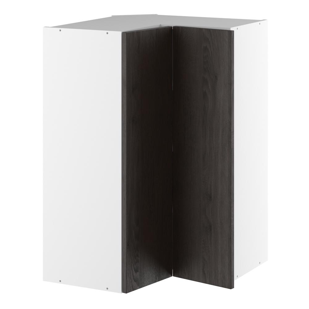 Vinkeloverskab til montering i hjørnet, med 2 låger. Skabet leveres med flytbare hylder og indbygget ophæng og kan sagtens hænge alene, men monteres ofte i sammenhæng med nogen flere skabe.
