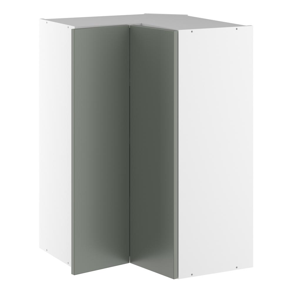 Vinkeloverskab til montering i hjørnet, med 2 låger. Skabet leveres med flytbare hylder og indbygget ophæng og kan sagtens hænge alene, men monteres ofte i sammenhæng med nogen flere skabe.