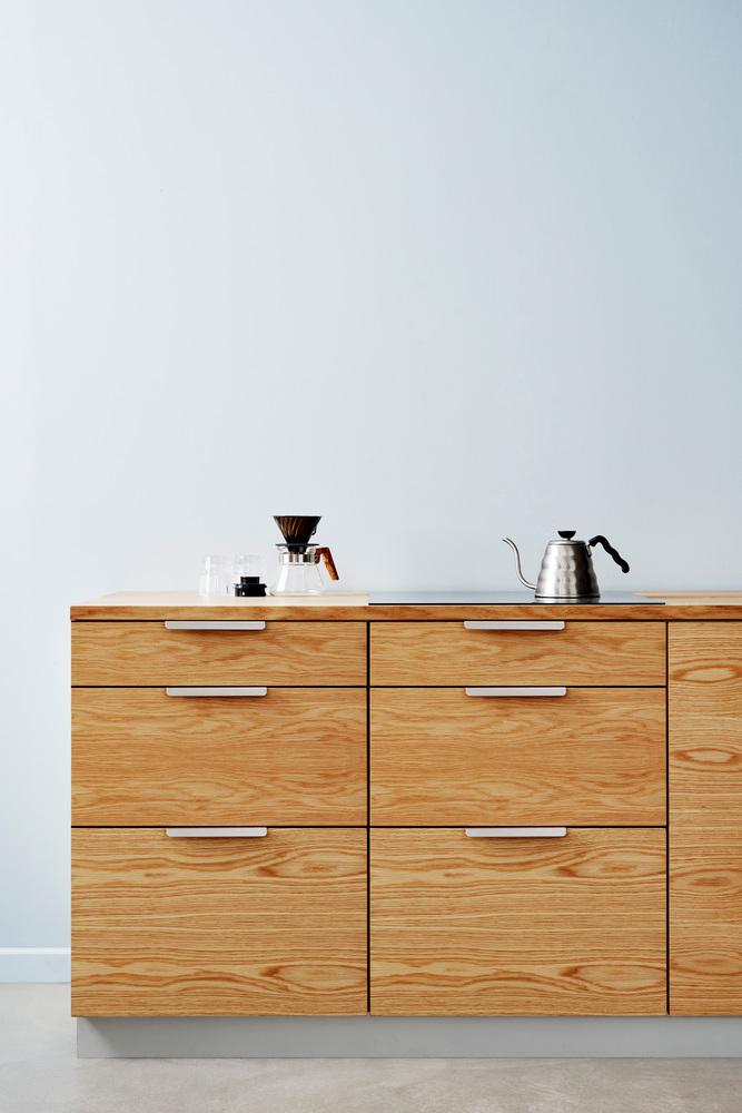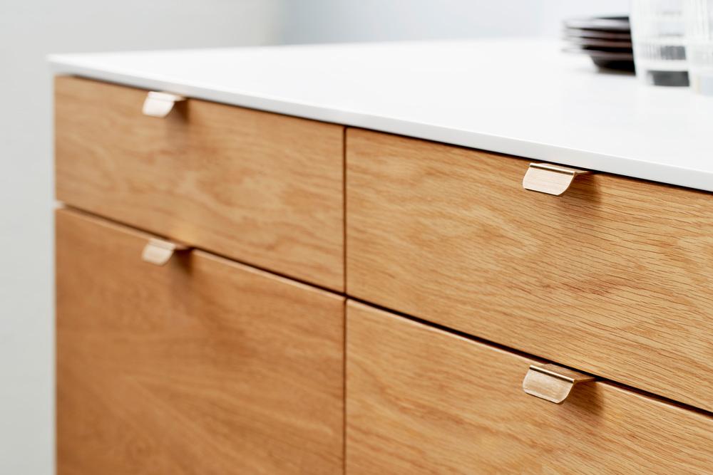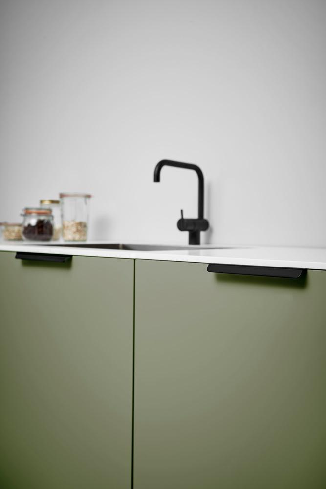 Furnipart - Accent har stramme og klare linjer, minimalt materiale og ergonomien i fokus. Et blødt og afrundet design i en stringent og fin profil. Kun lige der hvor der er behov for en ”gribekant” er der lavet én. Det har handlet om at komme ind til benet, kigge på hvor lidt der er behov for at man kan få fat. At knækket er fremhævet, giver både grebet et horisontalt forløb og fremhæver grebet form og gør at grebet er nemt at holde om og trække i.