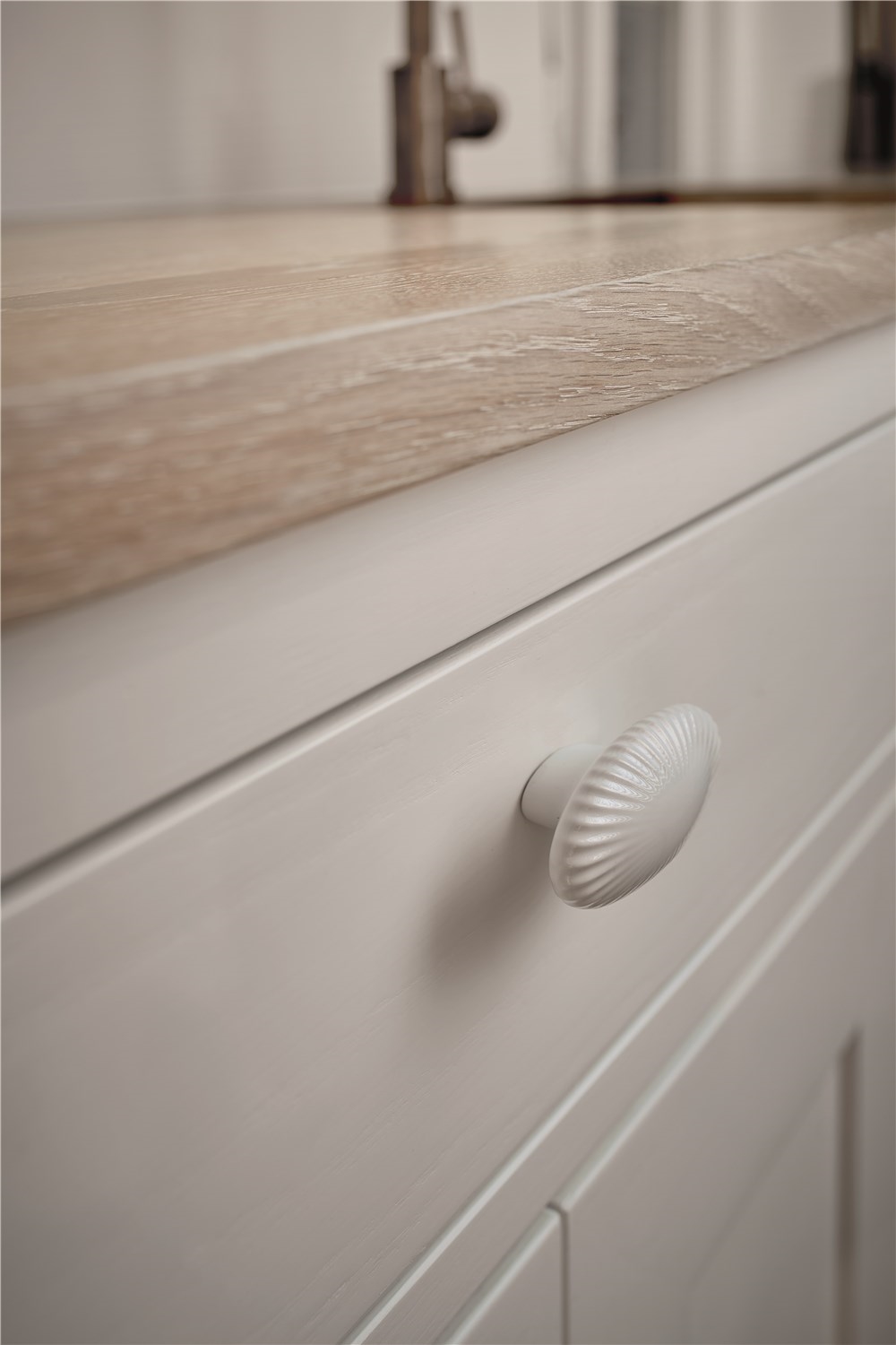 Halo er et design inspireret af naturen. Den bløde og ovale form har et raffineret radialmønster, der minder om en strandskalle eller frøkapsel. Halo er en elegant genfortolkning af et traditionelt porcelænsgreb.