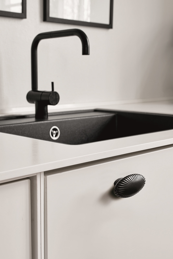 Halo er et design inspireret af naturen. Den bløde og ovale form har et raffineret radialmønster, der minder om en strandskalle eller frøkapsel. Halo er en elegant genfortolkning af et traditionelt porcelænsgreb.