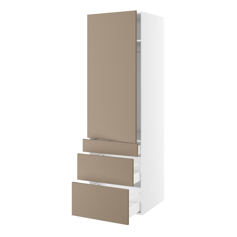 Garderobeskab, 1244mm låge, 3 skuffer H:124/252/316mm, 1 hylde, 1 konstruktionshylde, 1 bøjlestang. H:1952 B:500 D:580