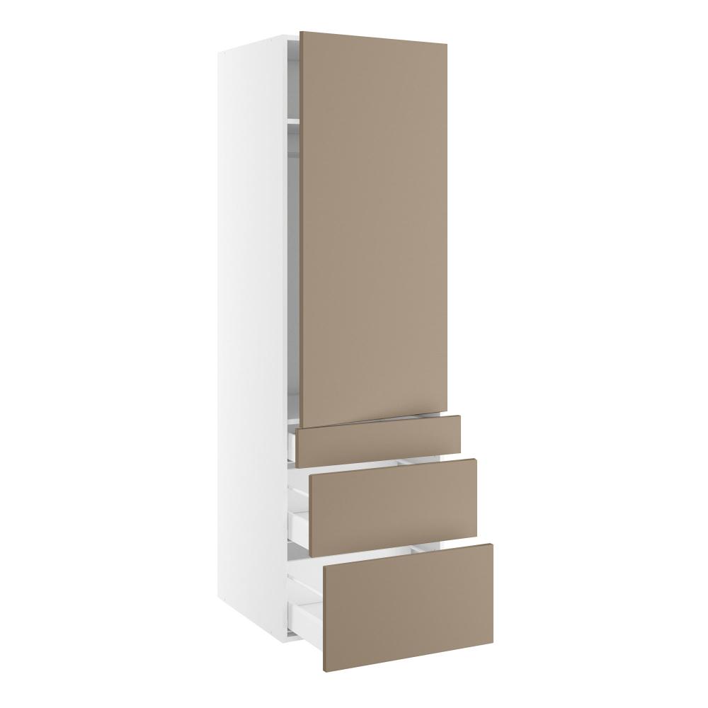 Garderobeskab, 1244mm låge, 3 skuffer H:124/252/316mm, 1 hylde, 1 konstruktionshylde, 1 bøjlestang. H:1952 B:600 D:580