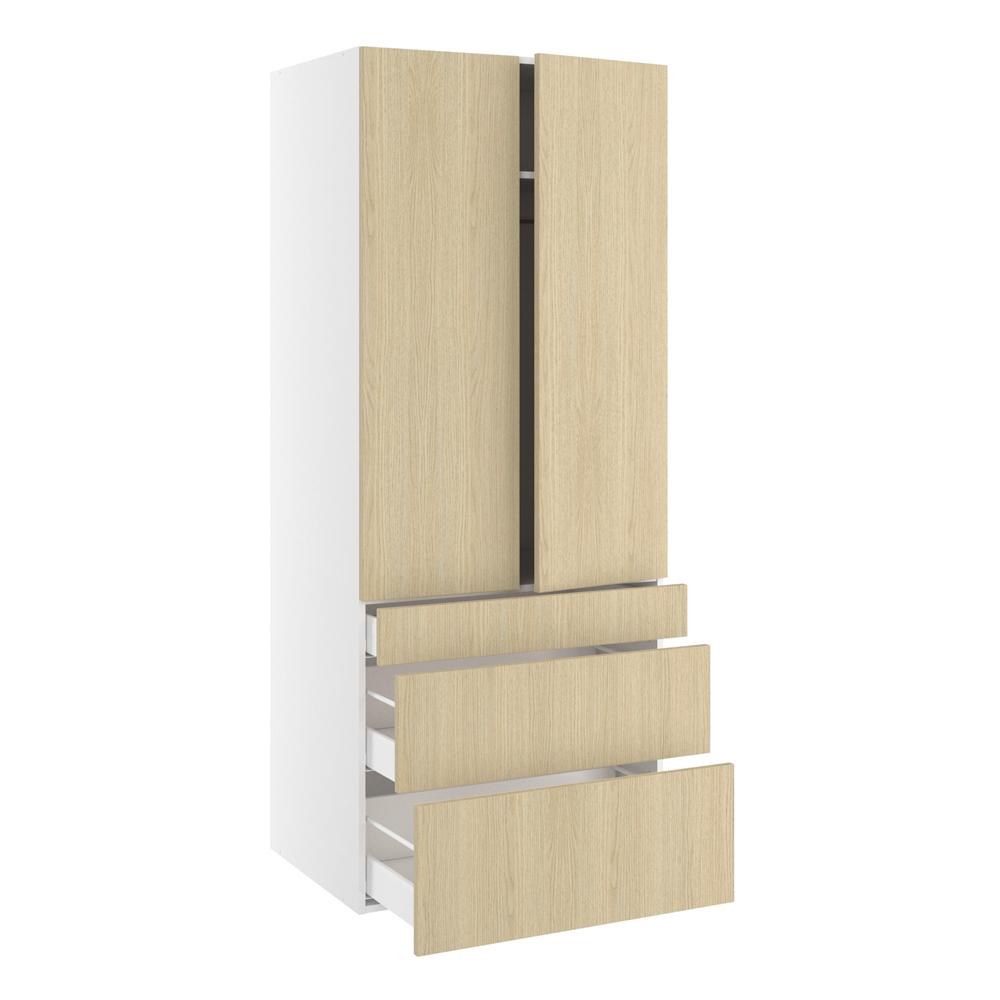 Garderobeskab, 1244mm dobbelt låger, 3 skuffer H:124/252/316mm, 1 hylde, 1 konstruktionshylde, 1 bøjlestang (leveres usamlet). H:1952 B:800 D:580