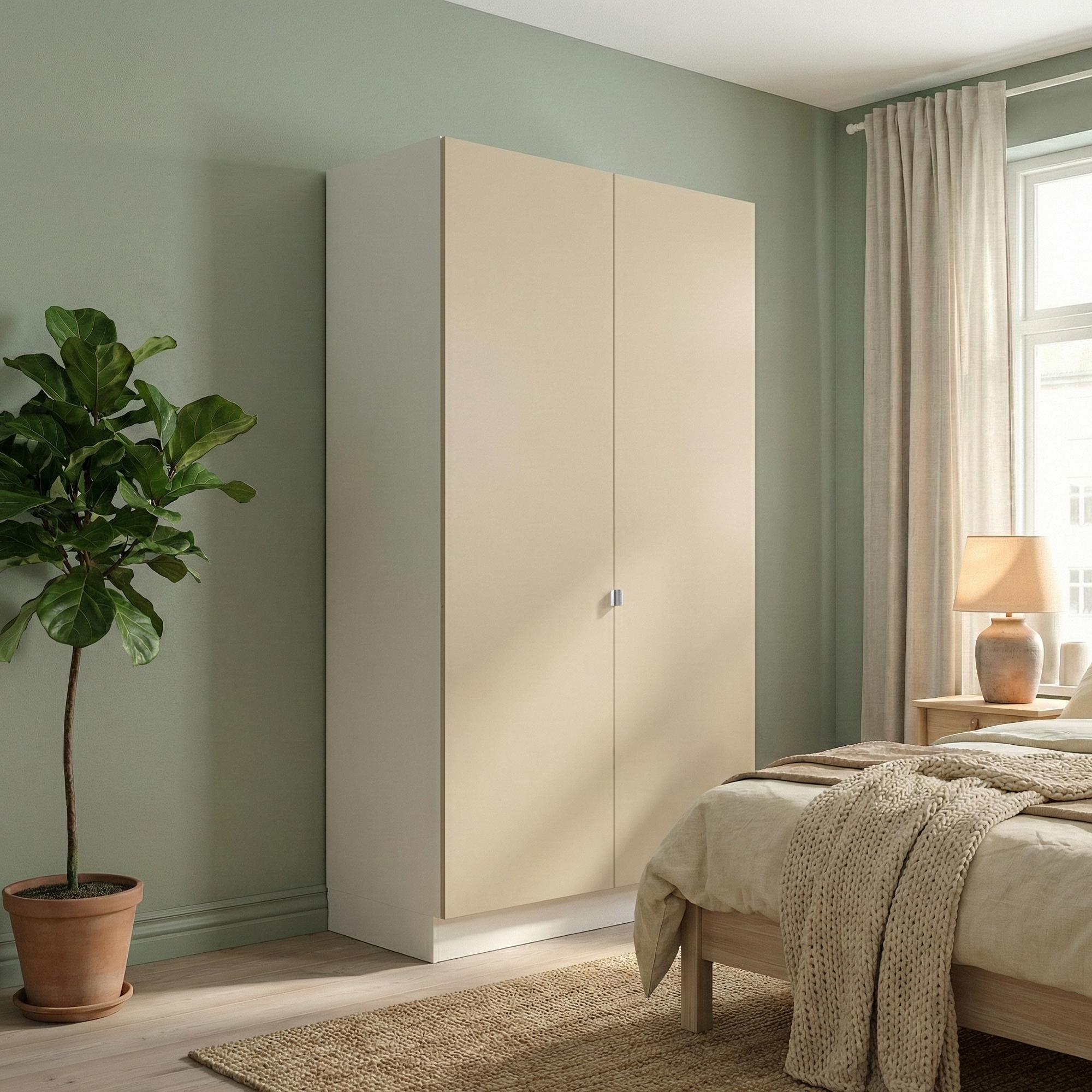 Garderobeskab med 2 låger i sand 120 cm fra Kitchn med Plano Sand front