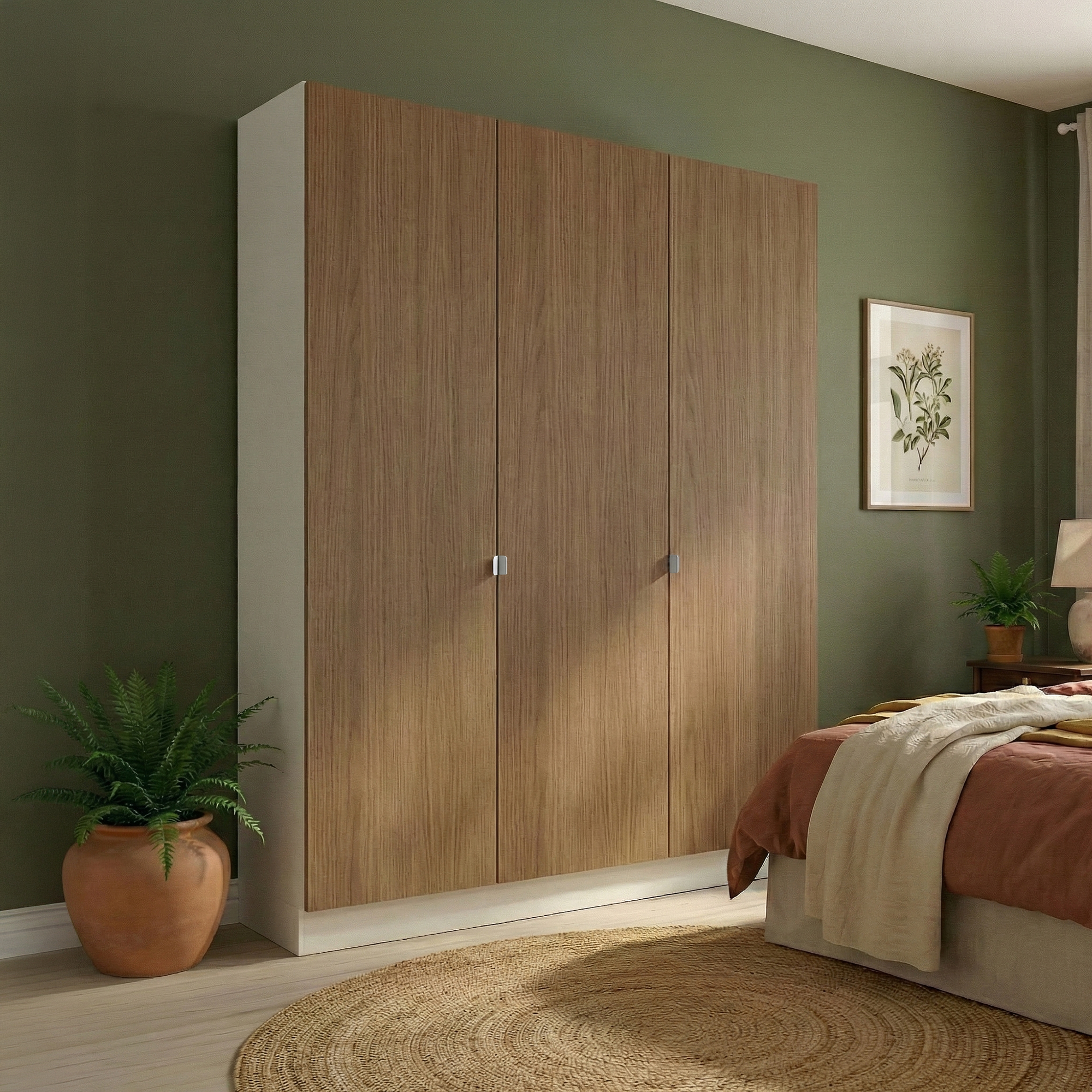 Garderobeskab med 3 låger i træ 180 cm fra Kitchn med Aspen Brun Eg front