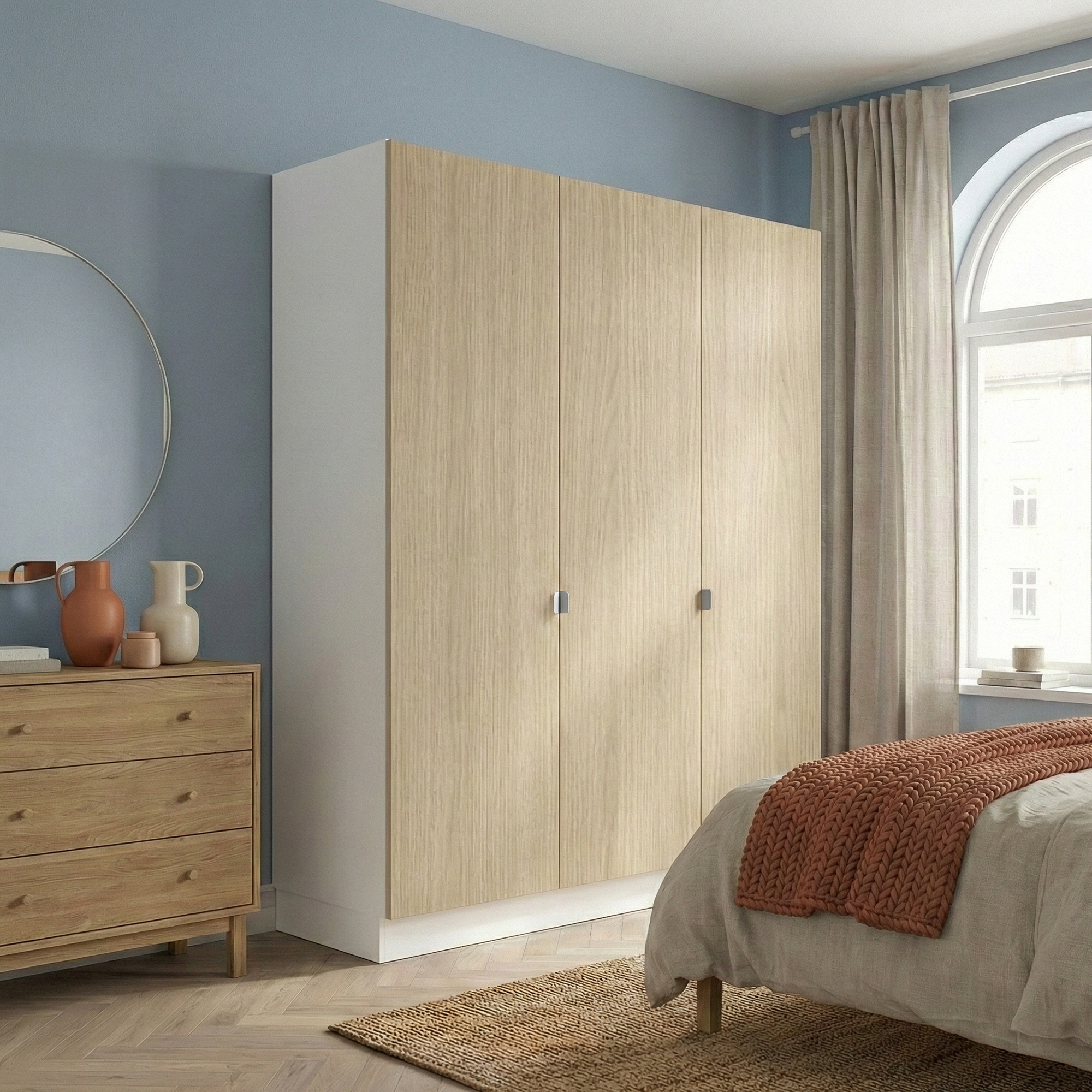 Garderobeskab med 3 låger i træ 180 cm fra Kitchn med Aspen Lys Eg front