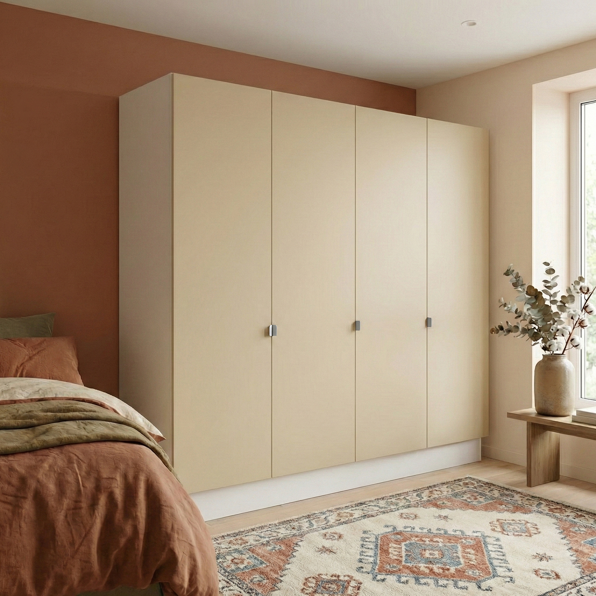 Garderobeskab med 4 låger i sand 240 cm fra Kitchn med Plano Sand front