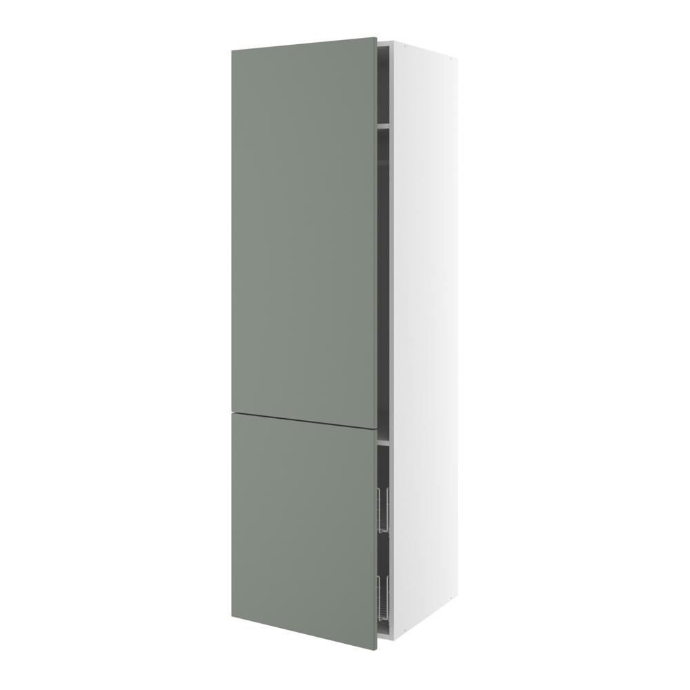 Praktisk indrettet højskab med let tilgængelighed, ikke mindst pga. de opdelte låger. De smarte trådkurve i bunden af skabet gør det let at udnytte den nederste del af skabet, og bøjlestangen midtfor holder skjorter og bluser i en perfekt højde. De to hylder kan endvidere placeres i skabet, hvor man ønsker det, og udnytter den resterende plads i skabet bedst muligt. Skabet kan bruges alene eller i en sammenhæng med andre højskabe. Overvej dæmpere på hængslerne, så der ikke er nogen der får klemte fingre bag lågerne.