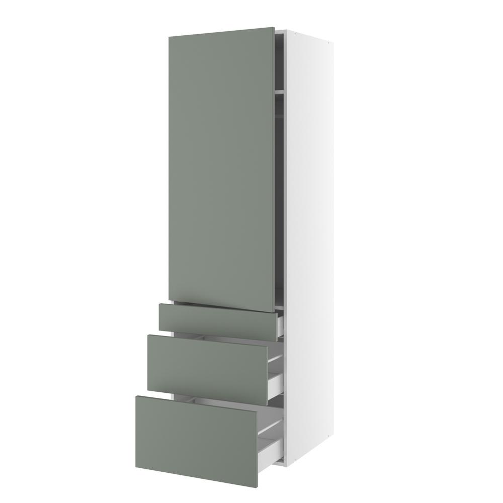 Smart og praktisk indrettet garderobeskab med en let tilgængelighed. Højskabet rummer både bøjlestang, hylde og hele 3 skuffer af forskellig højde, så du kan have plads til opbevaring af både store og små sager. Bøjlestangen holder skjorter og bluser i en perfekt højde, og skabet kan bruges alene eller i sammenhæng med andre højskabe. Overvej at tilkøbe dæmpere til hængslerne, så ingen får klemte fingre.
