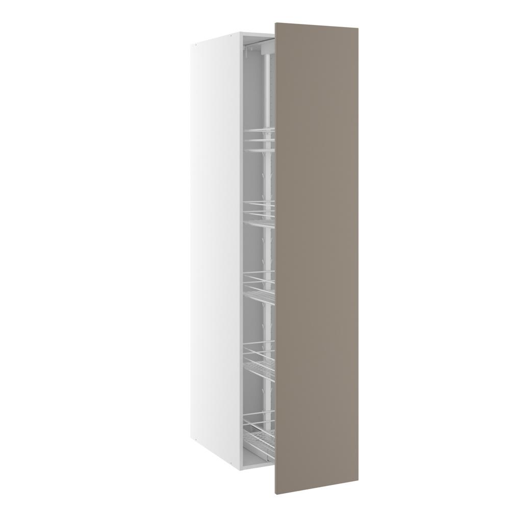 Fleksibelt, smalt højskab, der er god til opbevaring. Det smarte udtrækssystem, sikrer tilgængelighed fra flere sider, da de 5 stk. indbyggede kurve følger med lågen ud, når skabet åbnes. Køkkenskabet er desuden let at åbne, selv ved stor belastning. Skabet har et væld af anvendelsesmuligheder. Brug skabet som et opbevaringsskab eller kolonialskab i køkkenet, hvor du kan opbevare alt fra mel og gryn til service og køkkengrej.