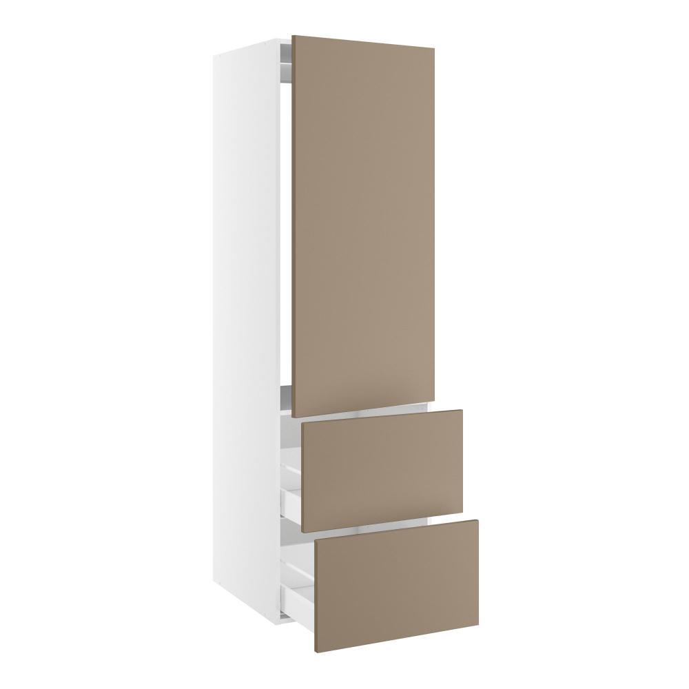 Højskab, t/integreret køl med glideskinner, 1244mm låge, m/hængselsboring, 2 skuffer H:348mm, hul: 1224mm. H:1952 B:600 D:580