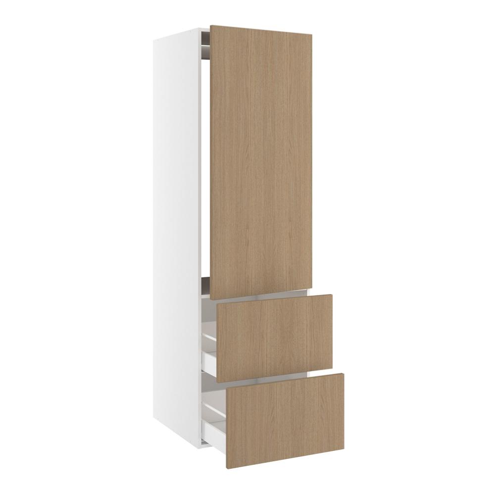 Højskab, t/integreret køl med glideskinner, 1244mm låge, m/hængselsboring, 2 skuffer H:348mm, hul: 1224mm. H:1952 B:600 D:580