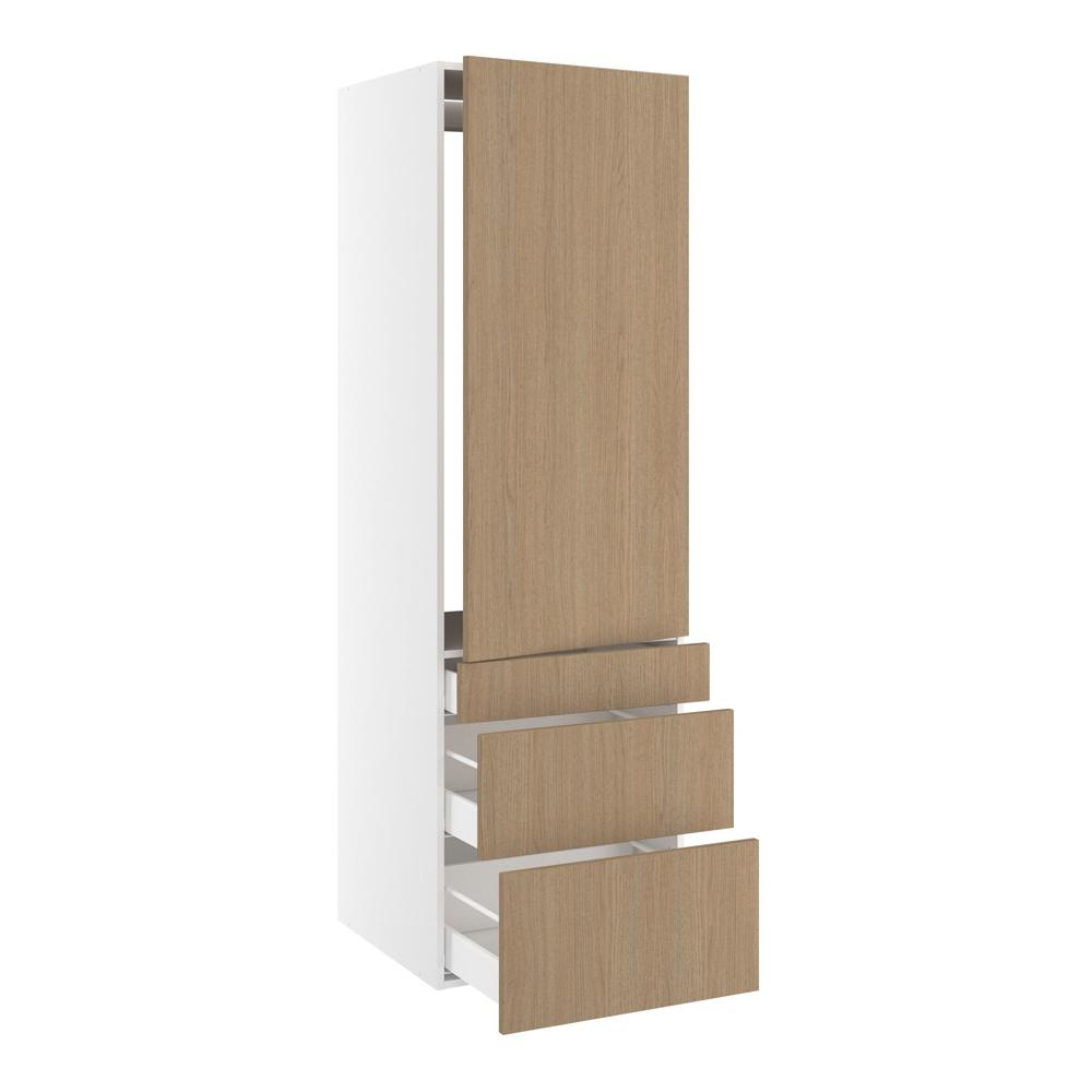Højskab, t/integreret køl med glideskinner, 1244mm låge, m/hængselsboring, 3 skuffer H:124/252/316mm, hul: 1224mm. H:1952 B:600 D:580