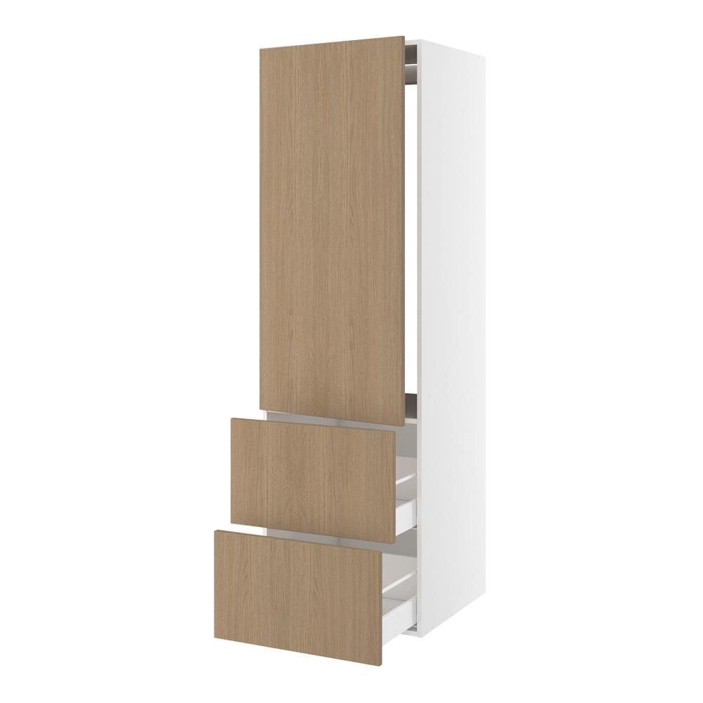 Højskab, t/integreret køl med fladhængsler, 1244mm låge, u/hængselsboring, 2 skuffer H:348mm, hul: 1224mm. H:1952 B:600 D:580