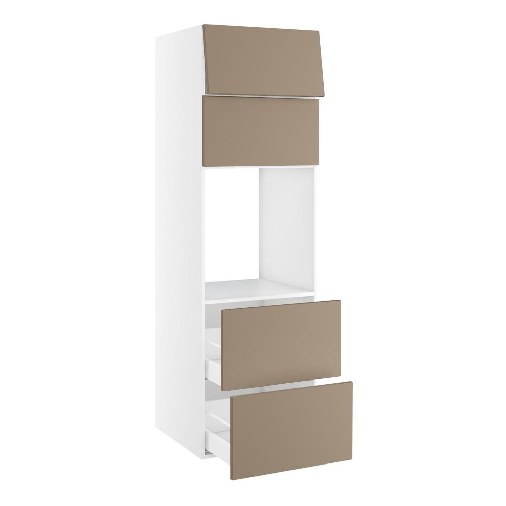 Højskab, t/ovn, 2 toplåger 316mm, 2 skuffer H:348mm, hul: 592mm. H:1952 B:600 D:580