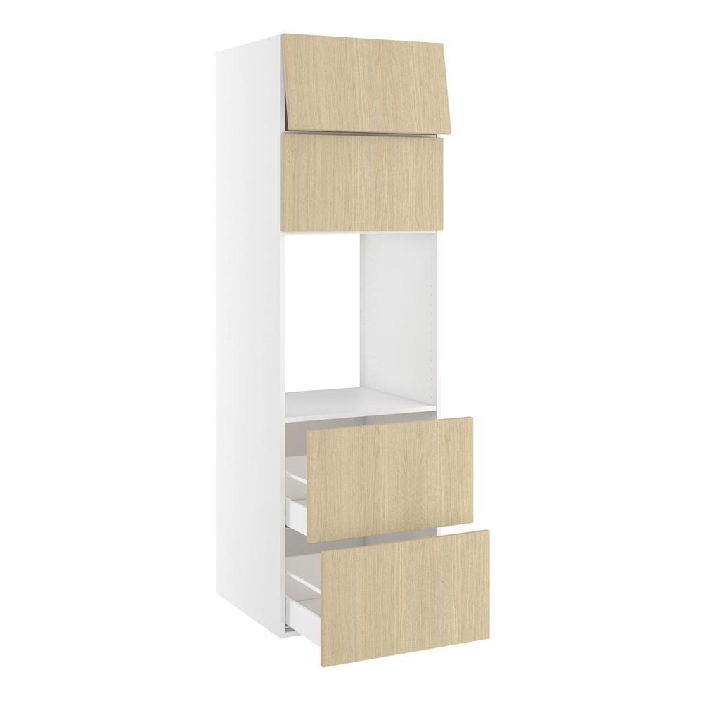 Højskab, t/ovn, 2 toplåger 316mm, 2 skuffer H:348mm, hul: 592mm. H:1952 B:600 D:580
