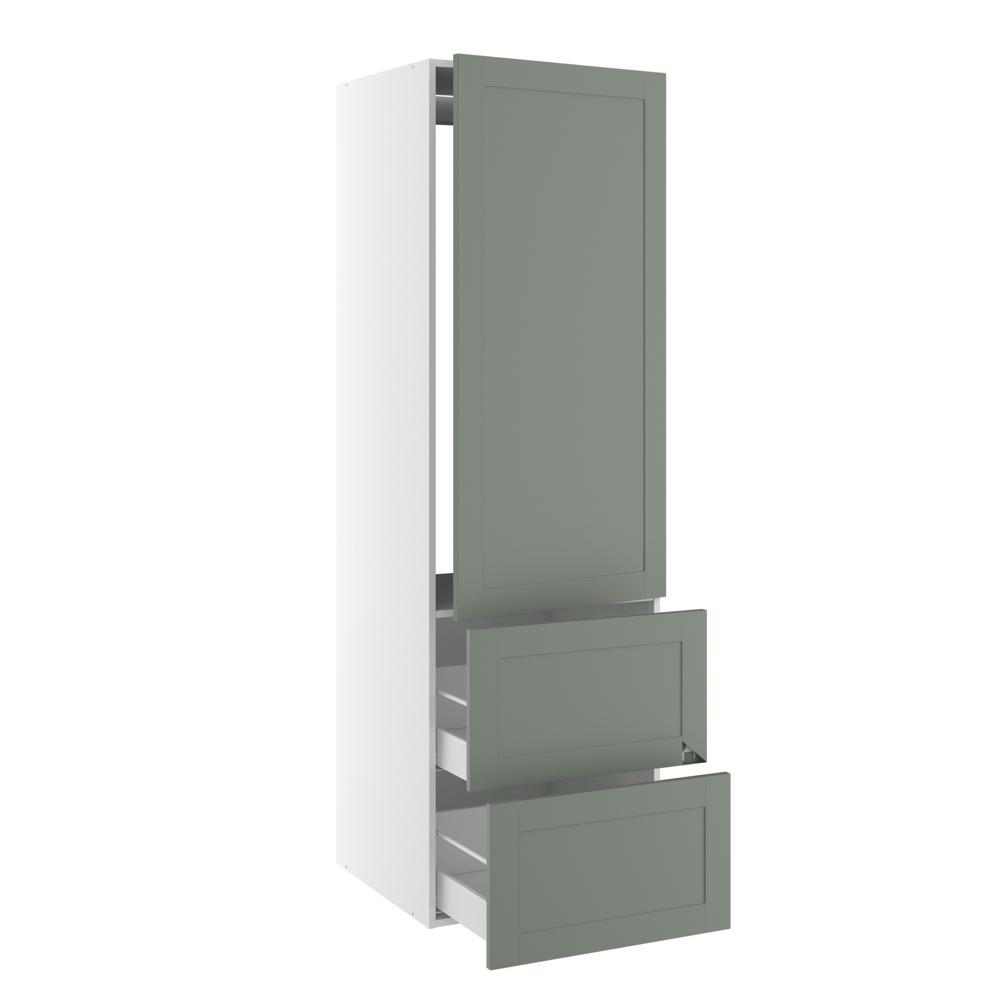Praktisk højskab til dit integreret køleskab, som sikrer at du får fuld udnyttelse af din plads. Højskabet er udstyret med 2 stk. luksus skuffer med fuldudtræk og softclose. Med et højskab til et integreret køleskab undgår du at bryde stilen i dit køkken. Skabslågen på dette højskab er designet således, at den monteres direkte på køleskabet, og du derfor får et køleskab, der matcher de øvrige skabe i dit køkken. Vær opmærksom på, at dit køleskab skal være beregnet til indbygning.