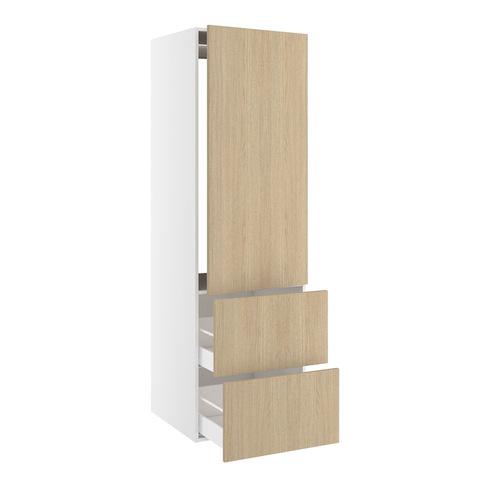 Højskab til integreret køl med 1 låge uden hængselsboring og 2 skuffer