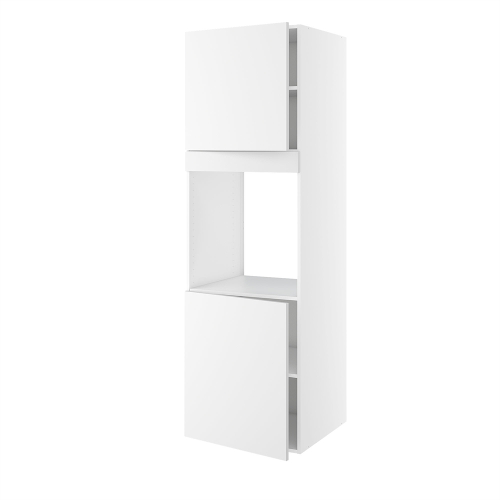 Dette praktiske højskab giver dig flere funktioner i ét skab, og det passer derfor perfekt ind i dit køkken. Ovnens placering er ideel i forhold til brugervenligheden, og du får mulighed for nemt at se til maden i ovnen. Over ovnen er der mulighed for opbevaring af mikroovn, og den øvrige skabplads bag de to låger gør sig godt til opbevaring af bl.a. ekstra bageplader og kageforme.