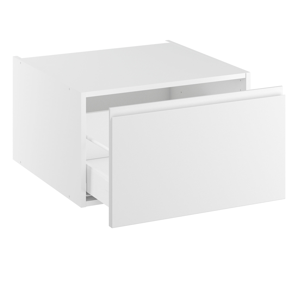 Praktisk bundskab med 1 skuffe. Bundskabet er til brug under vaskemaskinen eller tørretumbleren. Den store skuffe kan sagtens rumme både vaskemidler og meget andet. Bundskabet, også kaldet flaskeskab, er også velegnet til brug under fryser eller køleskab, så anvendelserne for et bundskab er mange. Overvej måtter i skuffen, så indholdet står godt og sikkert.