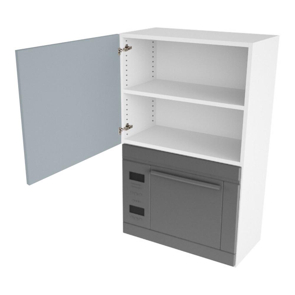 Praktisk overskab til mikroovn med sidehængslet låge og 1 stk. flytbar hylde. Skabet er udført i et funktionelt design, hvor du har mulighed for at vælge låge, så det matcher resten af dit køkkens elementer. Skabet er desuden også velegnet til opbevaring af tilbehør til mikroovnen, så du altid har det i nærheden, men samtidig er det pænt gemt væk, hvis dette ønskes. Med den flytbare hylde, opnår du masser af opbevaringsplads ved mikroovnen, som du kan anvende til køkkengrej, kolonialvarer eller ovnfade og lignende.