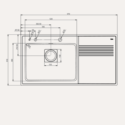 Intra Frame 97 SX. Underlimet rustfri stål køkkenvask