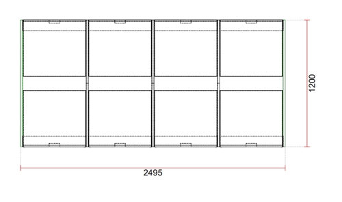 Denne køkkenø har mål på 249,5 cm i bredden og 120 cm i dybden. Med en dybde på netop 120 cm giver det muligheden for frit valg af skabe på begge sider.