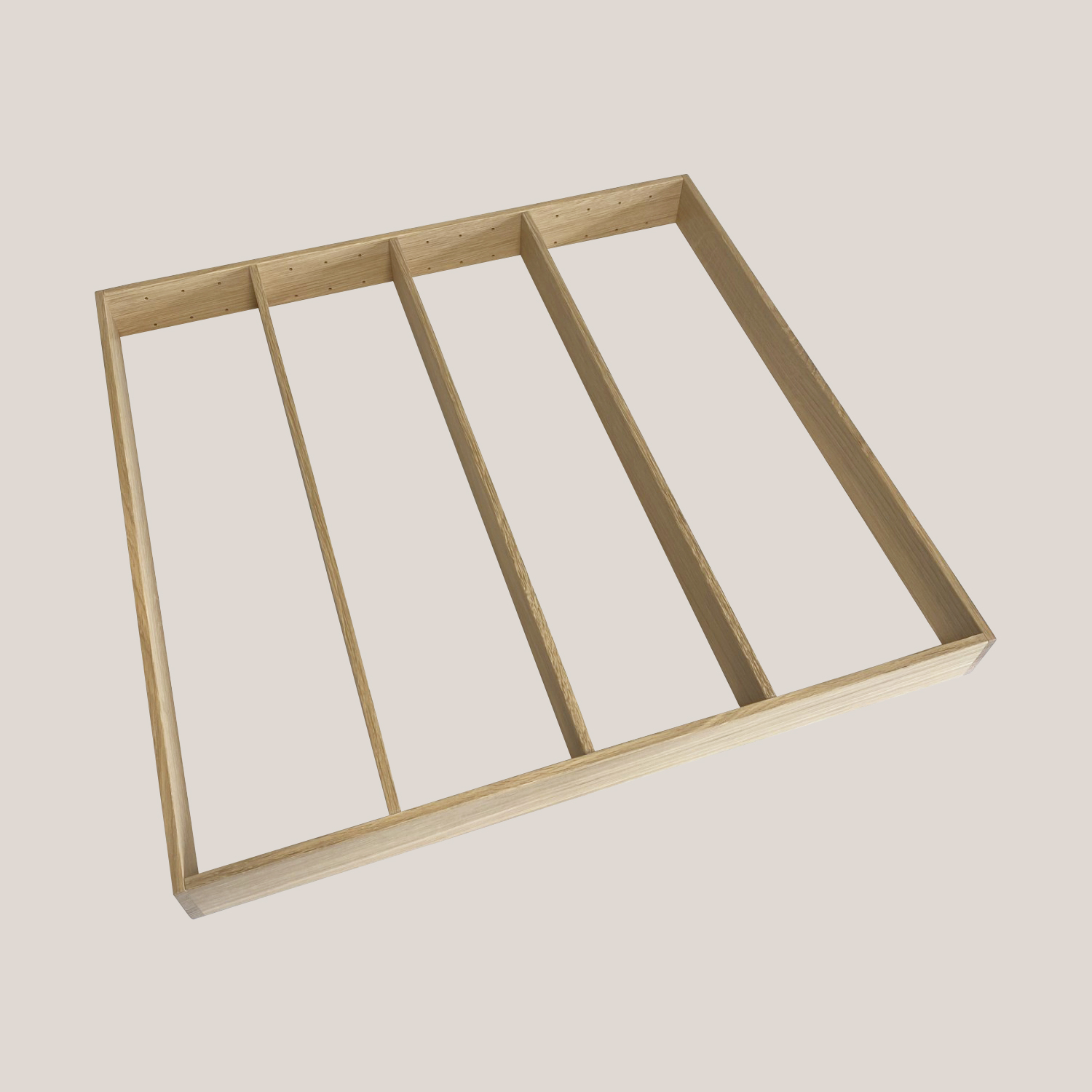 Just Wood storrumsindsats er fremstillet i olieret egetræ. Den passer perfekt i en Just Wood køkkenskuffe og gør det enkelt at skabe overblik i skufferne.