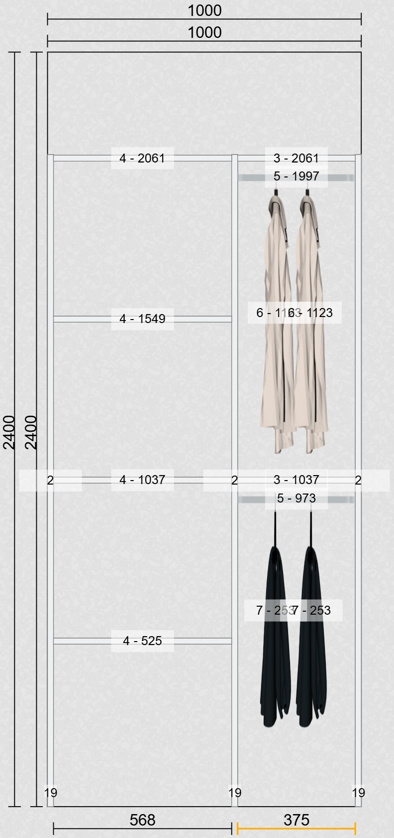 OBS: Inventar er uden bagbeklædning / inventar har standard højde på 207,4 cm. 50,5 cm. dybde