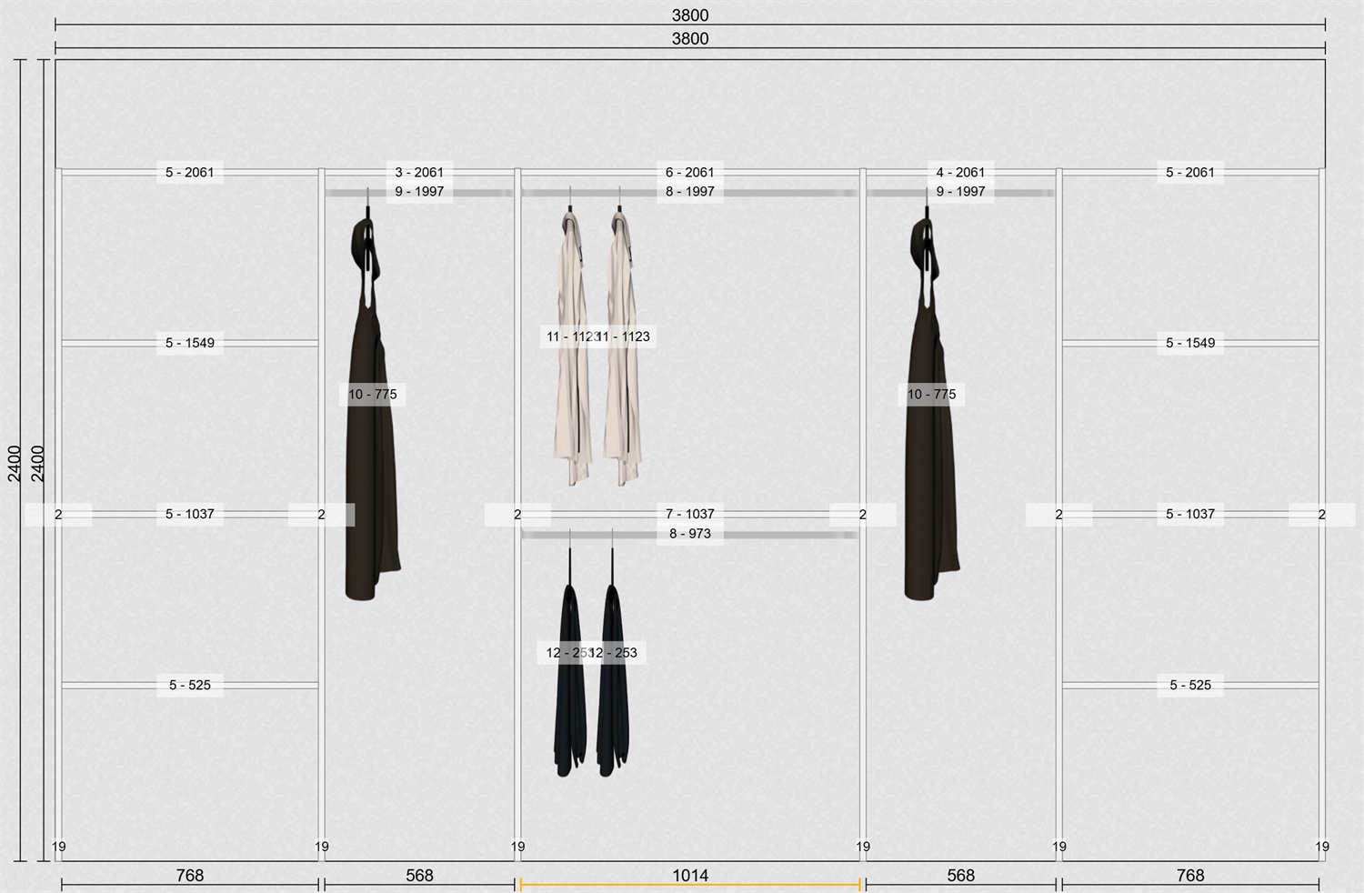 OBS: Inventar er uden bagbeklædning / inventar har standard højde på 207,4 cm. 50,5 cm. dybde