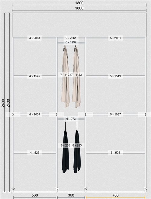 OBS: Inventar er uden bagbeklædning / inventar har standard højde på 207,4 cm. 50,5 cm. dybde