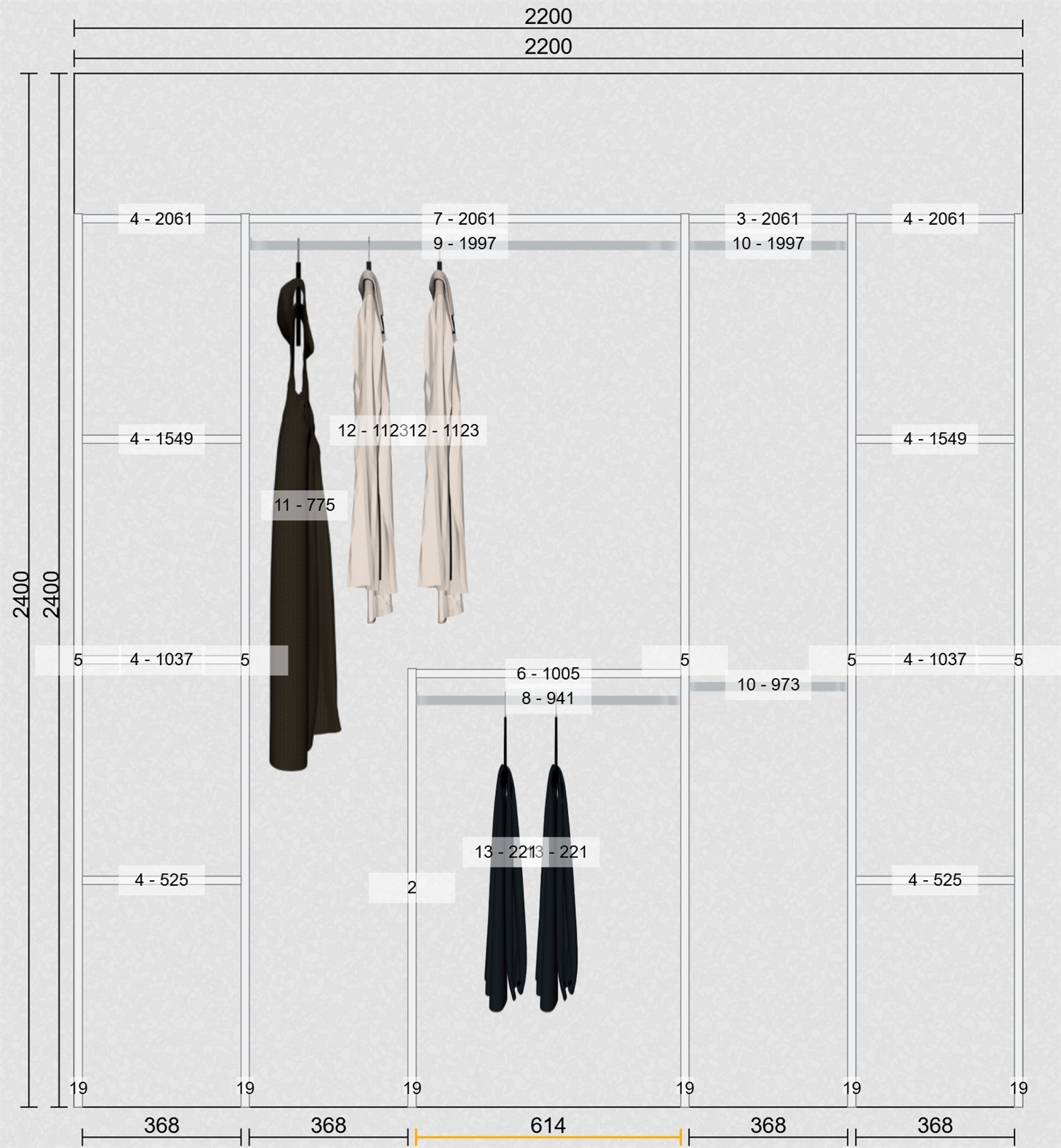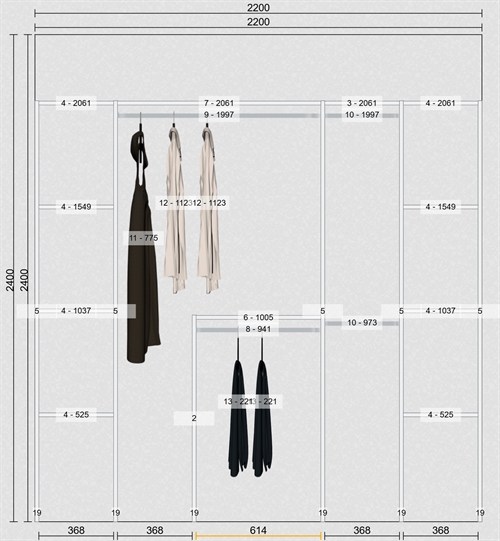 OBS: Inventar er uden bagbeklædning / inventar har standard højde på 207,4 cm. 50,5 cm. dybde