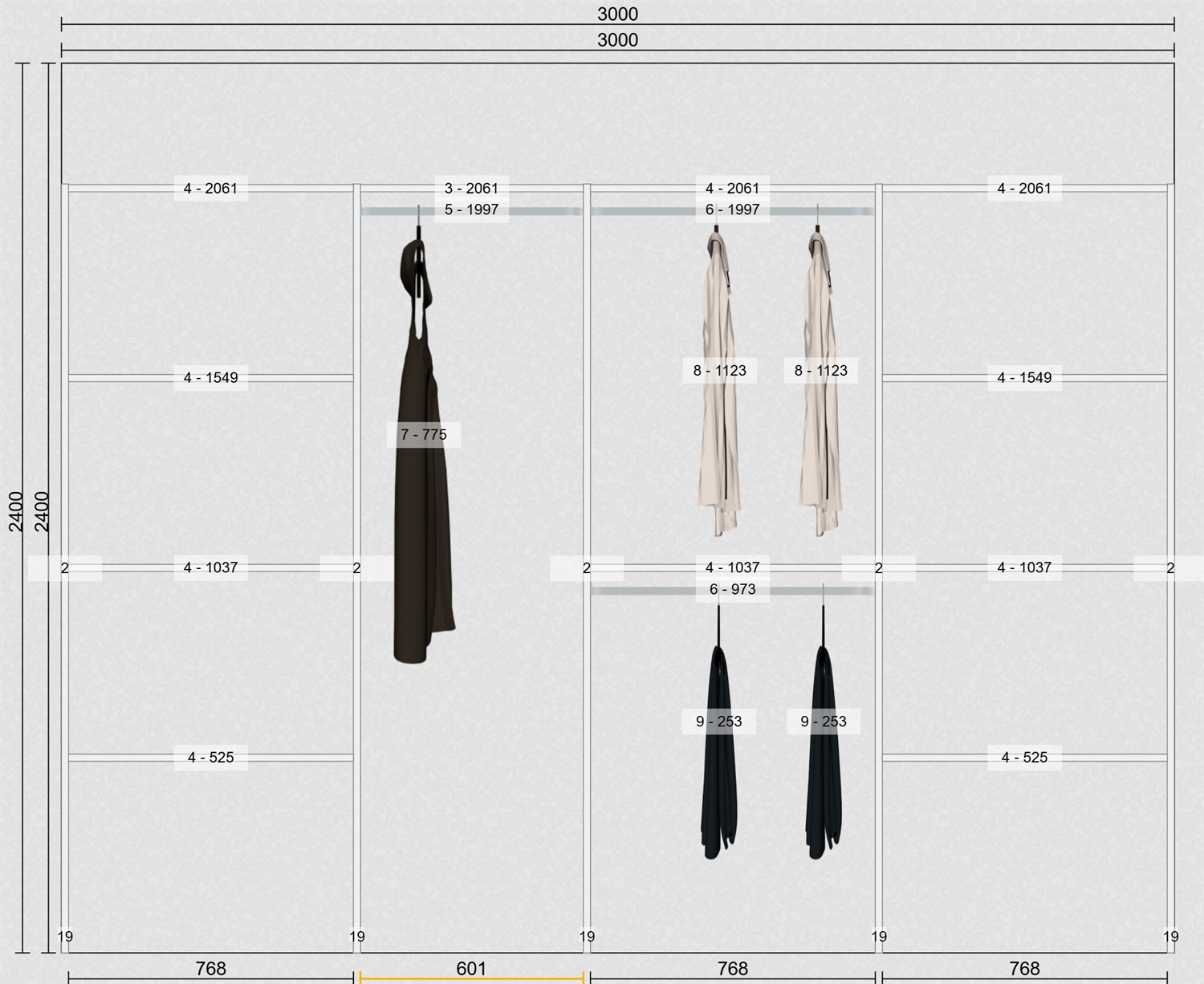 OBS: Inventar er uden bagbeklædning / inventar har standard højde på 207,4 cm. 50,5 cm. dybde
