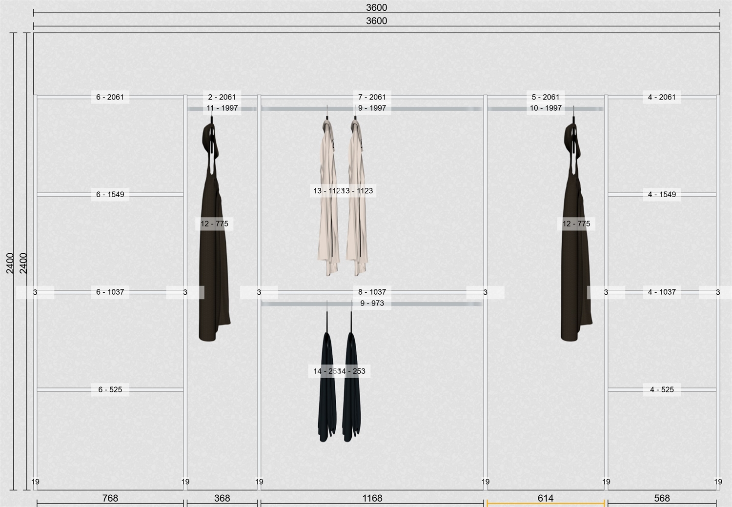 OBS: Inventar er uden bagbeklædning / inventar har standard højde på 207,4 cm. 50,5 cm. dybde