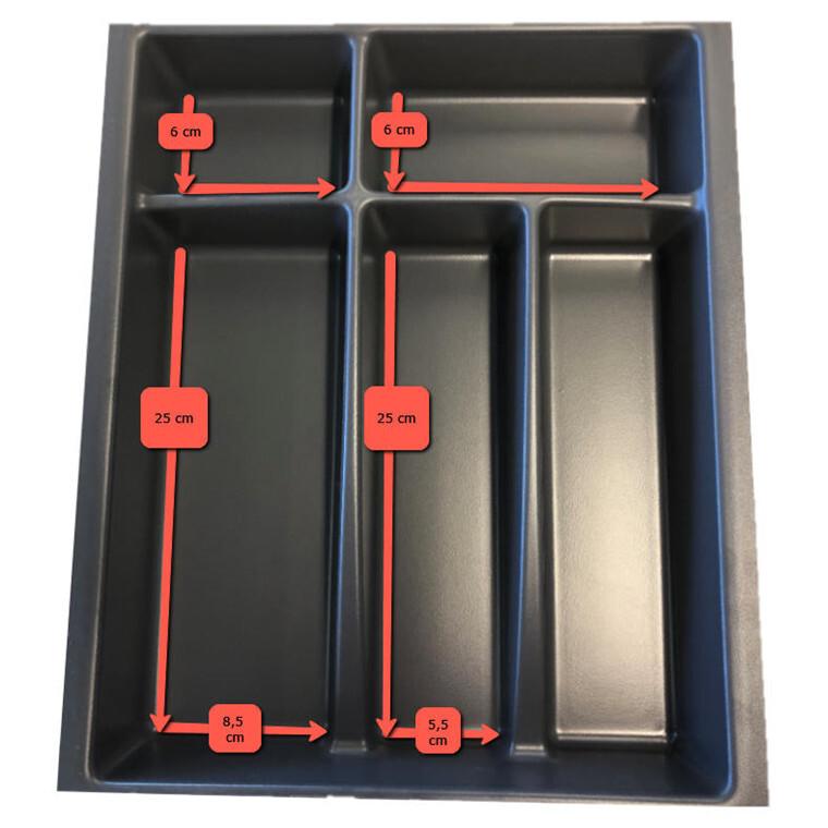 Denne kosmetikindsats passer ned i vores 40 cm brede badskuffer. Den er inddelt i fire rum med forskellig størrelse, så du for eksempel kan bruge skuffen til kosmetik opbevaring og opbevaring af makeupbørster, hårpynt og lignende. På den måde kan duskabe et bedre overblik, når du organiserer dine småting i vores smarte kosmetikindsats.