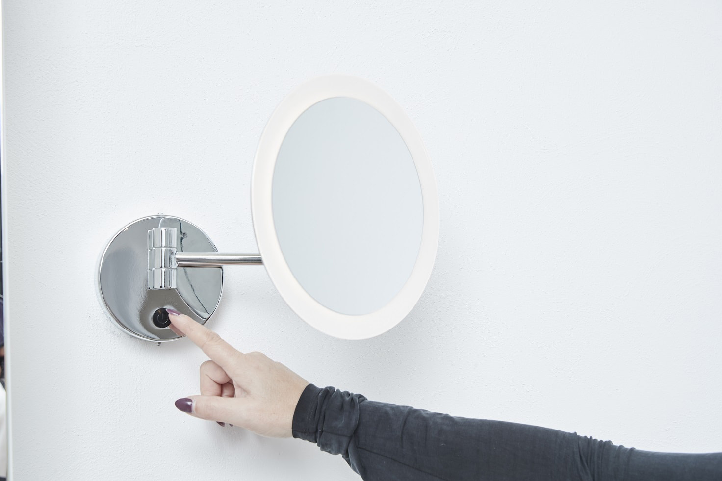 Væghængt kosmetikspejl m. 3x forstørrelse og lys
