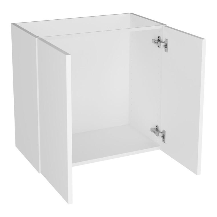 Bemærk: Der er metalafstivning forrest foroven, så der er plads til vaskekummen ovenfra i skabet.