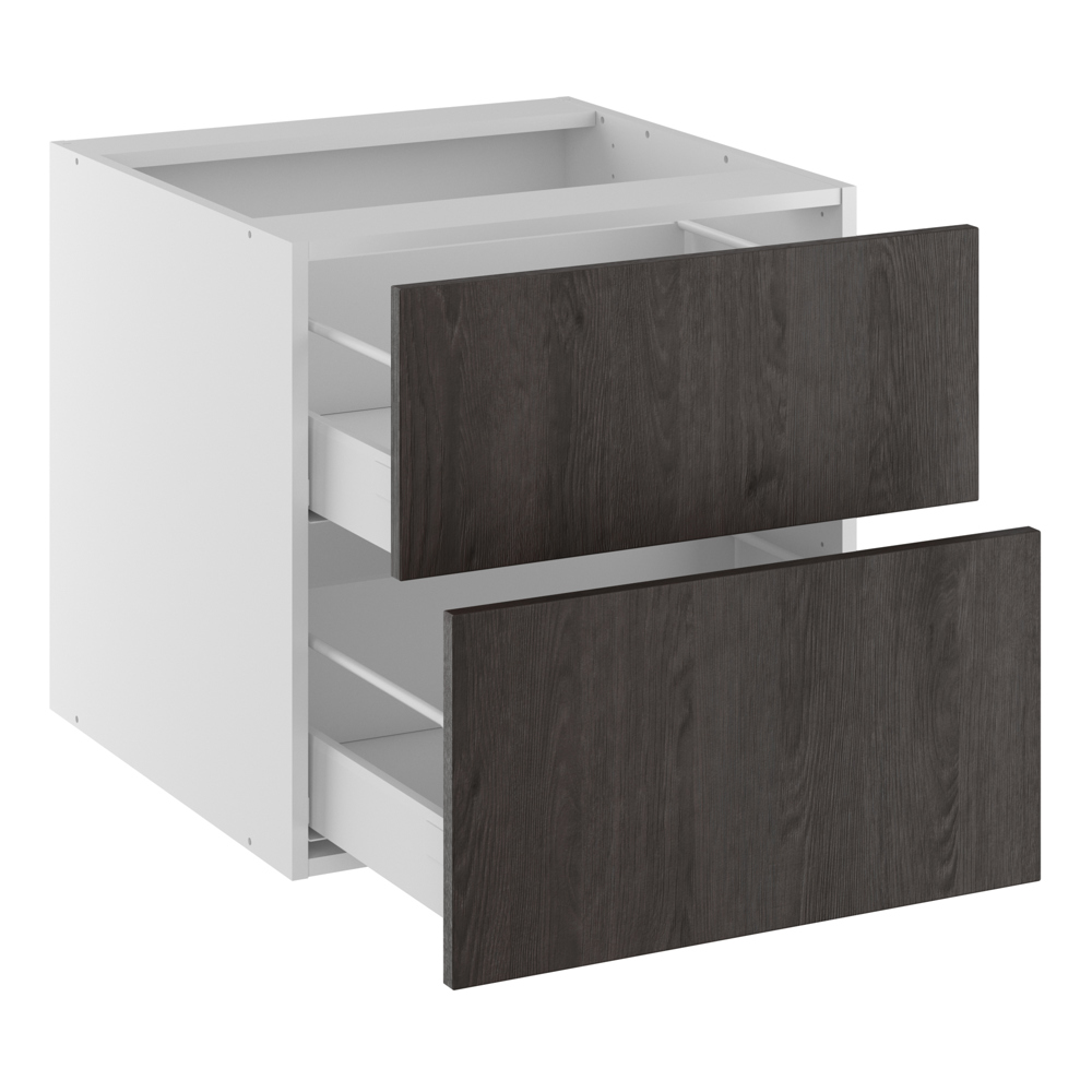 Praktisk lavt skuffeskab med god plads. Underskabet er velegnet, hvor der enten ønskes en ekstra høj sokkel, eller hvor der ønskes en lav bordpladehøjde. Skabet er udstyret med kvalitets-skuffer, der bærer op til 30 kg. pr. skuffe, og der er selvfølgelig både fuldudtræk og softluk på skufferne. Overvej at tilkøbe gummimåtter så alt i skuffen står godt fast ved åbning og lukning.